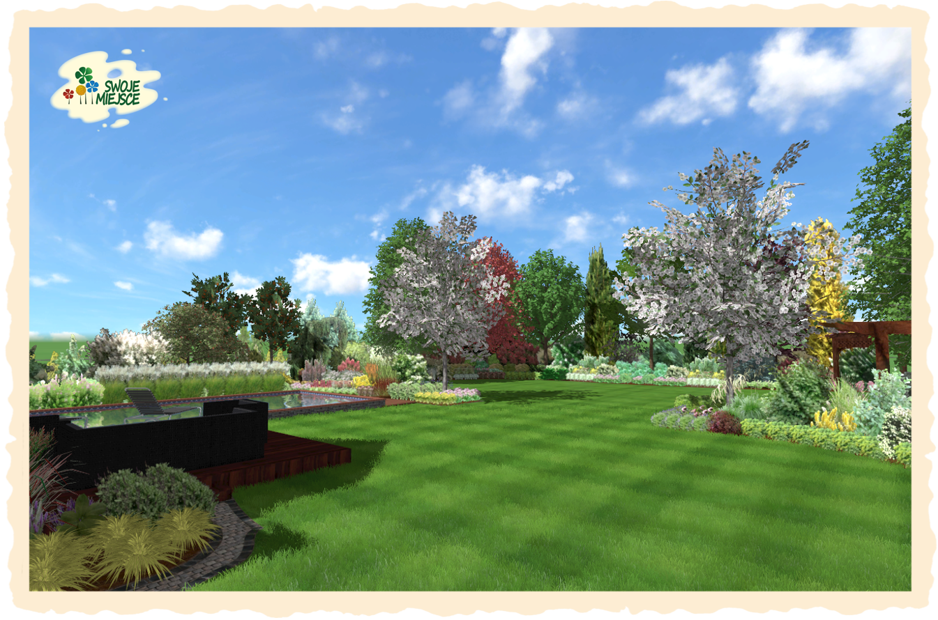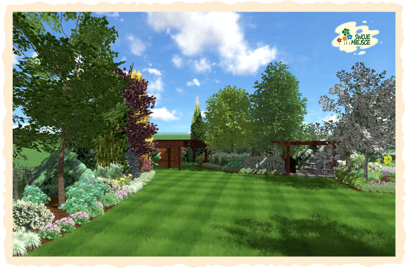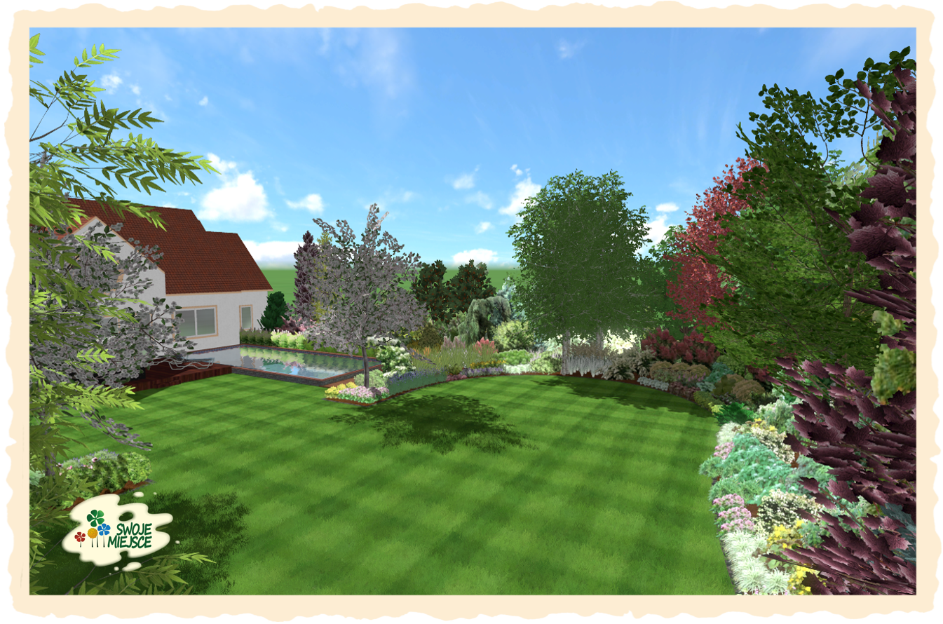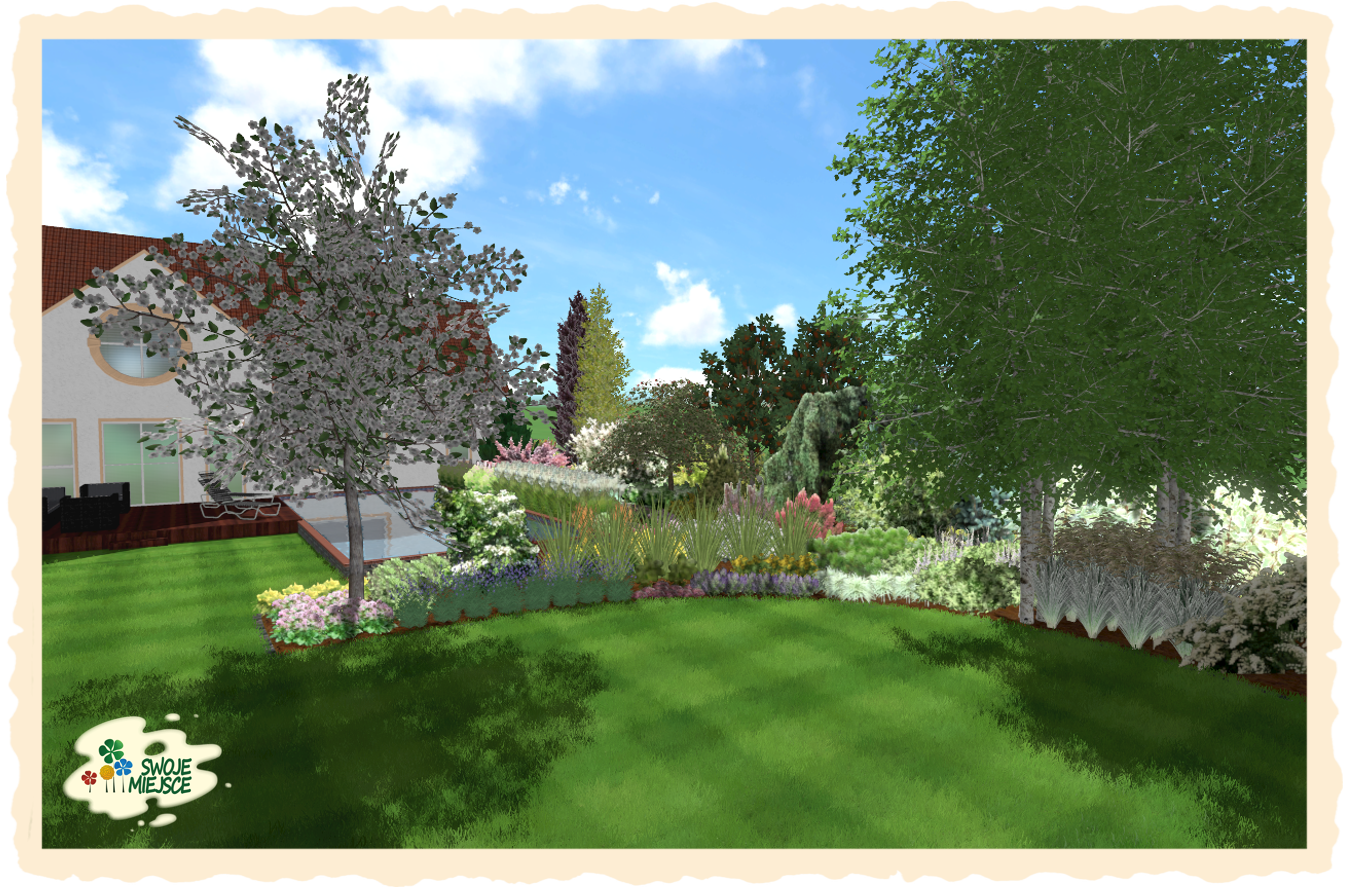 Ogród zaprojektowano z uwzględnieniem wszystkich życzeń inwestora. Założeniem do projektu było osiągnięcie naturalistycznego charakteru nasadzeń oraz jedność zarówno funkcjonalna jak i kompozycyjna.