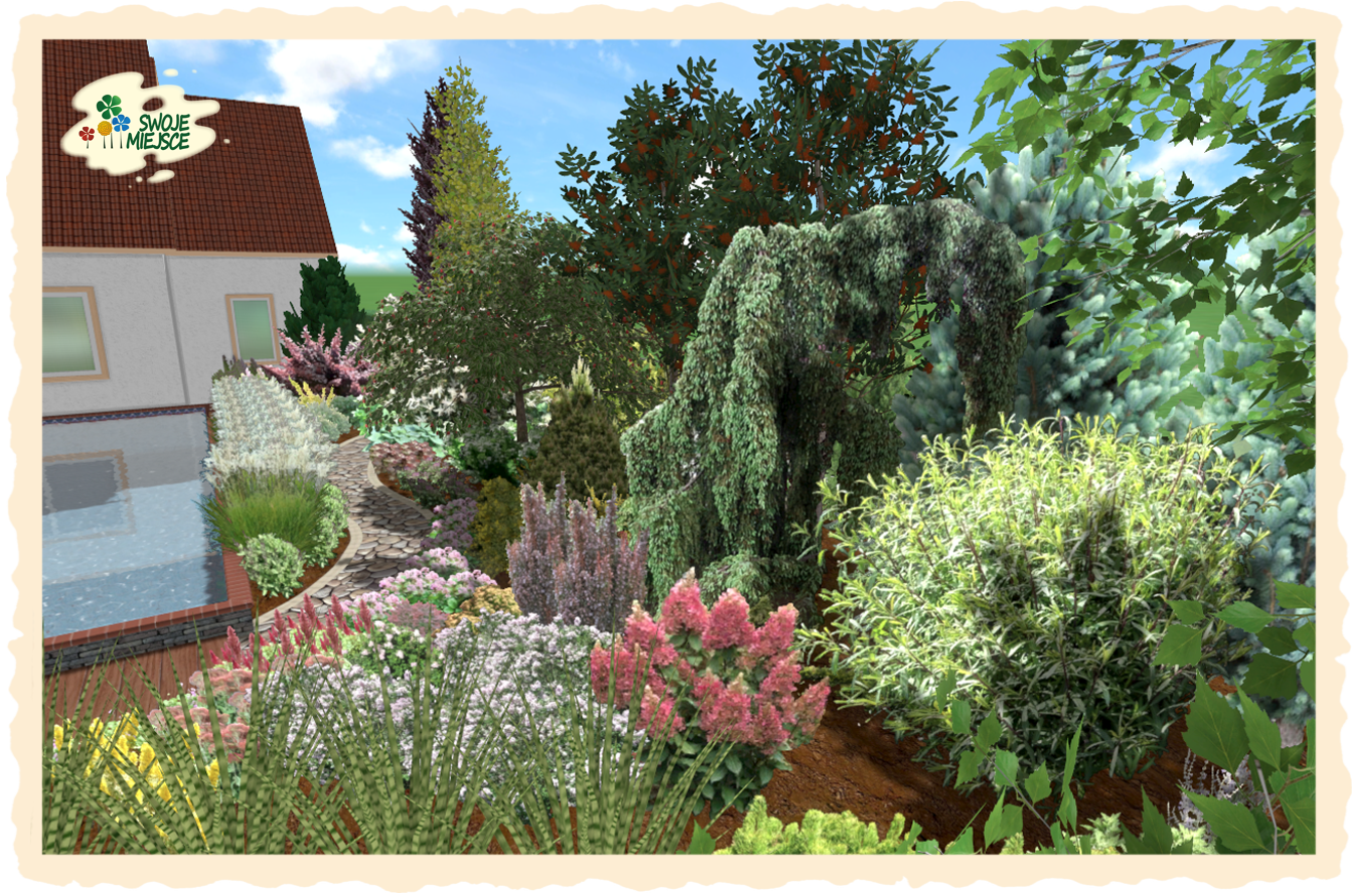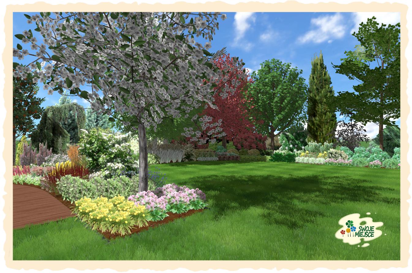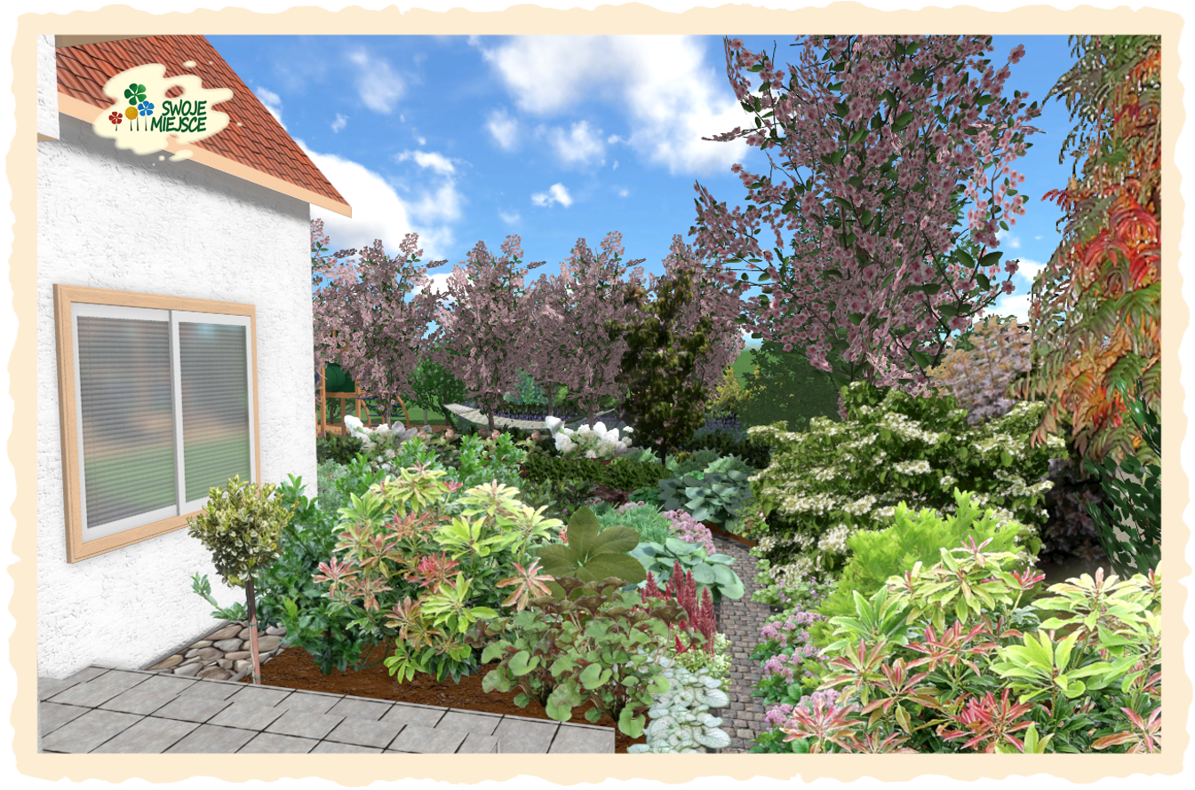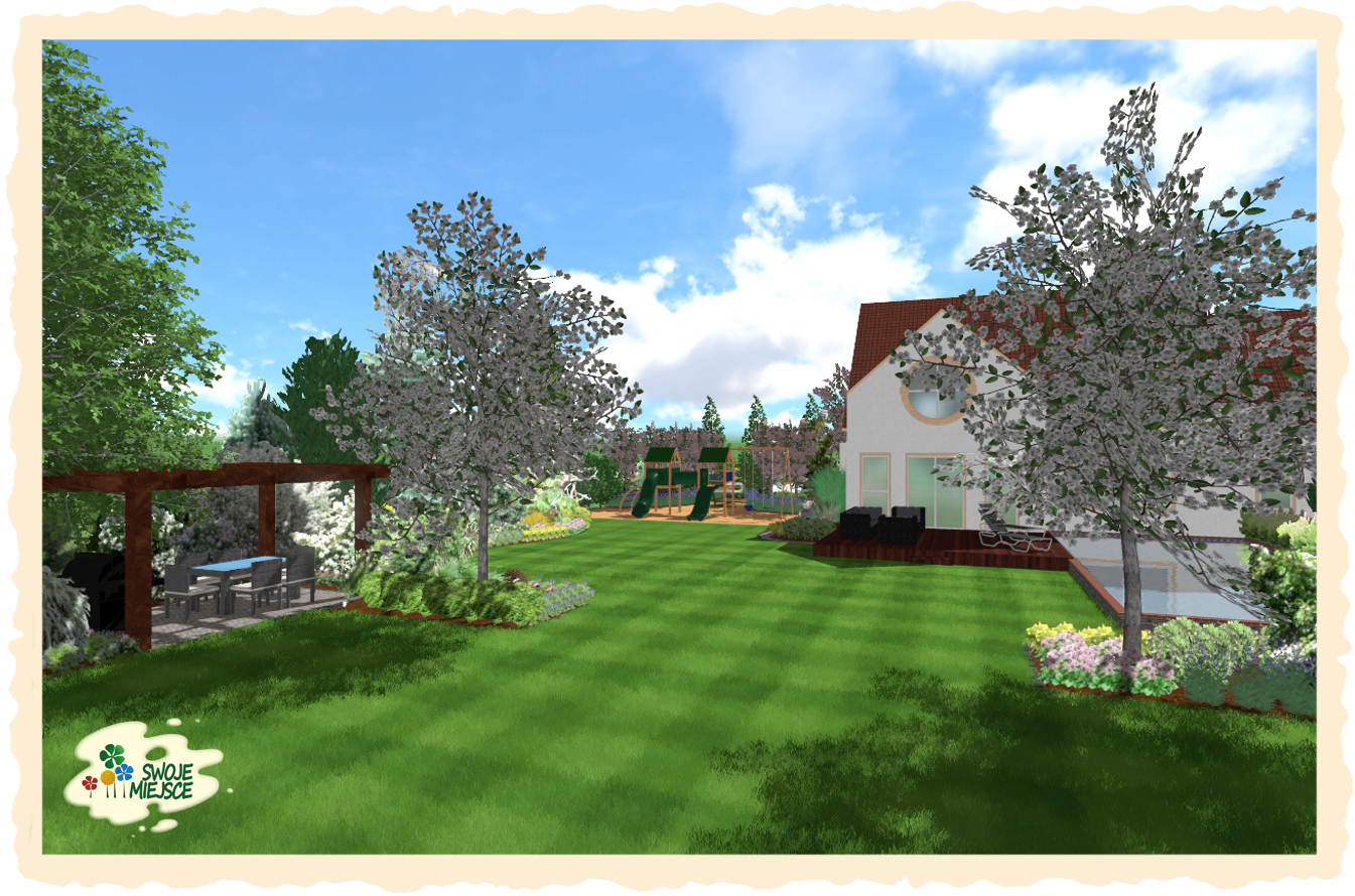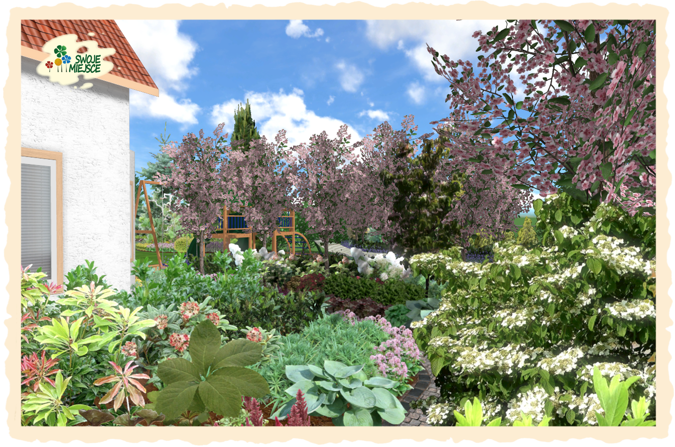 Ogród zaprojektowano z uwzględnieniem wszystkich życzeń inwestora. Założeniem do projektu było osiągnięcie naturalistycznego charakteru nasadzeń oraz jedność zarówno funkcjonalna jak i kompozycyjna.