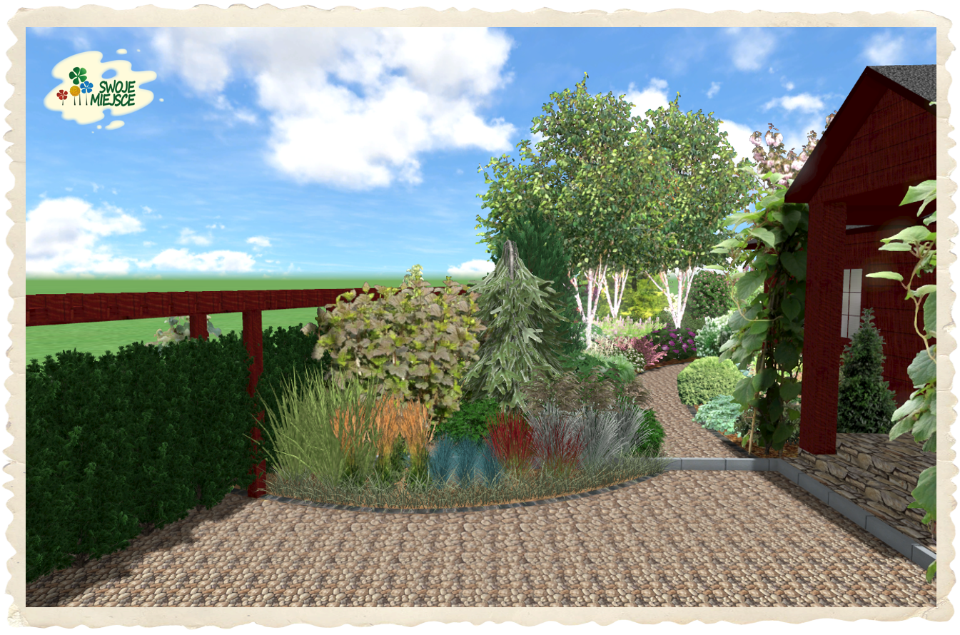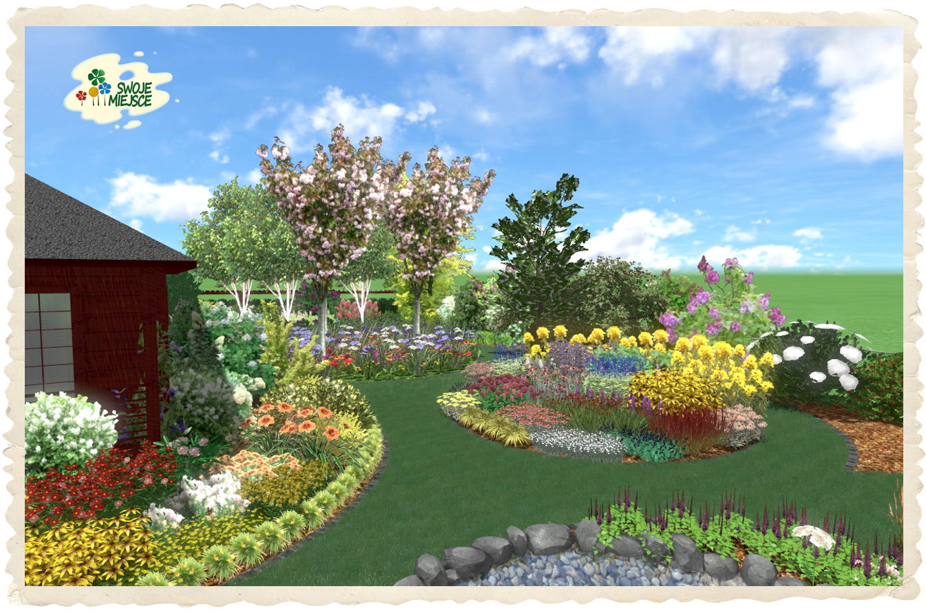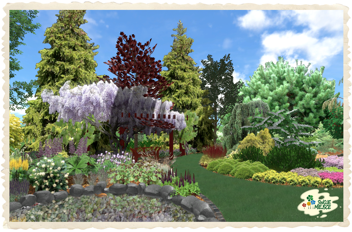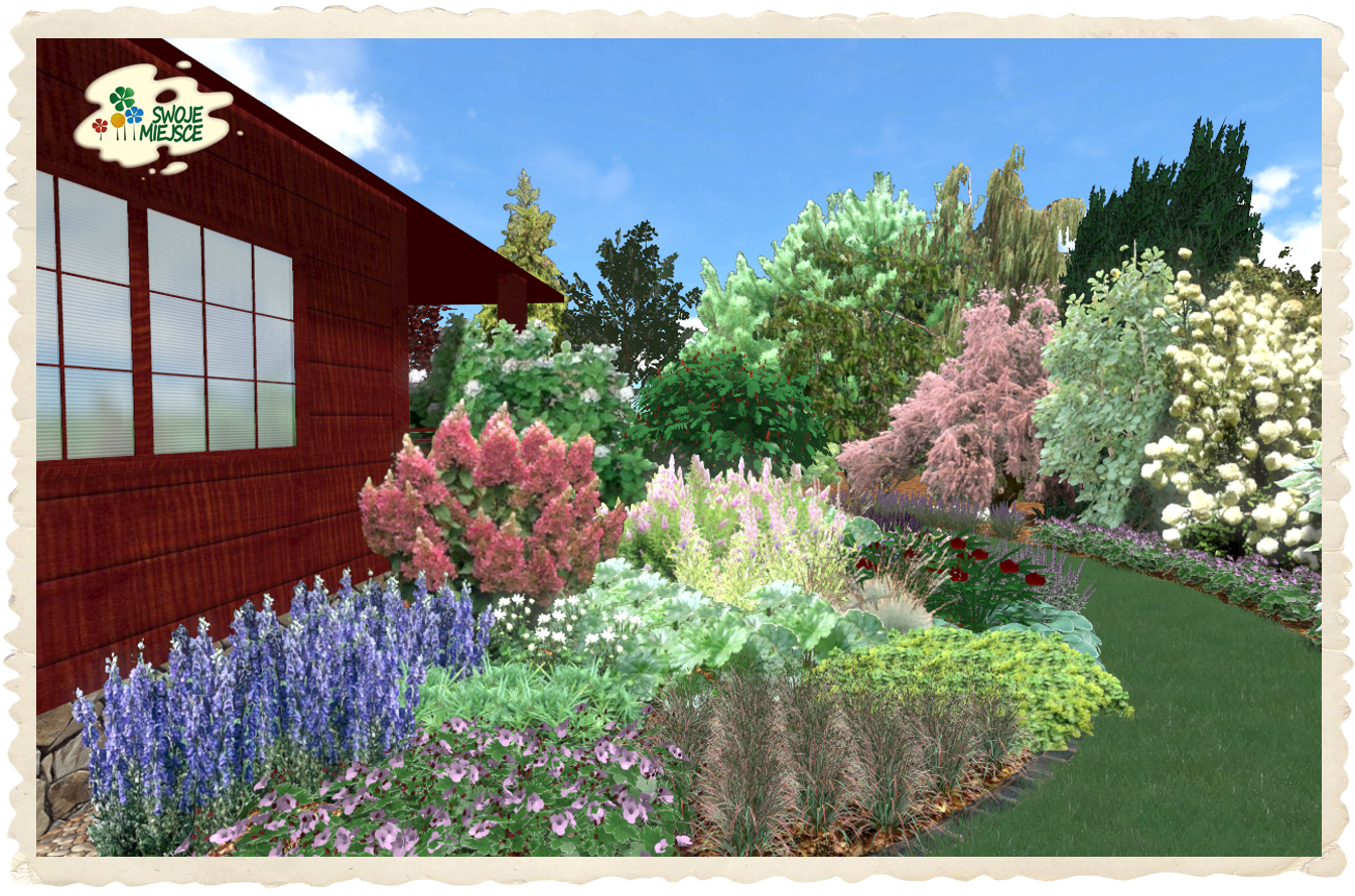 Ogród zaprojektowano z uwzględnieniem wszystkich życzeń inwestora. Założeniem do projektu było stworzenie naturalistycznego ogrodu o bardzo bogatej i różnorodnej szacie roślinnej.