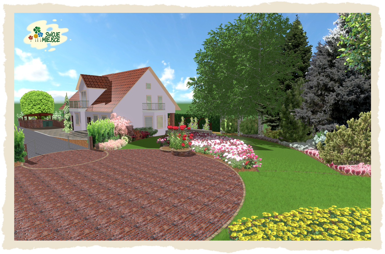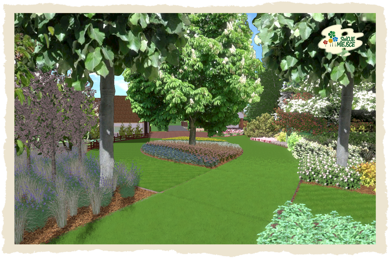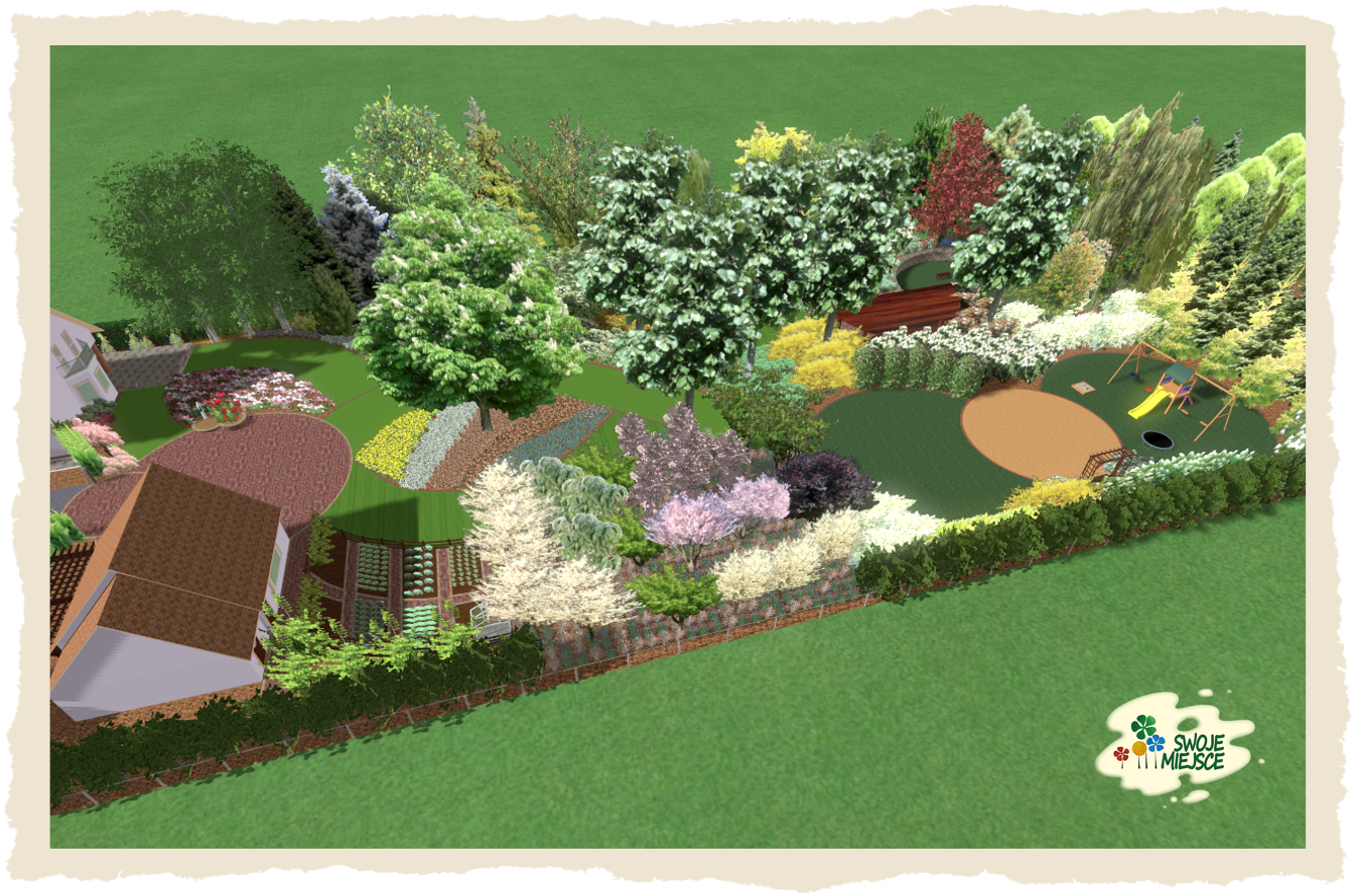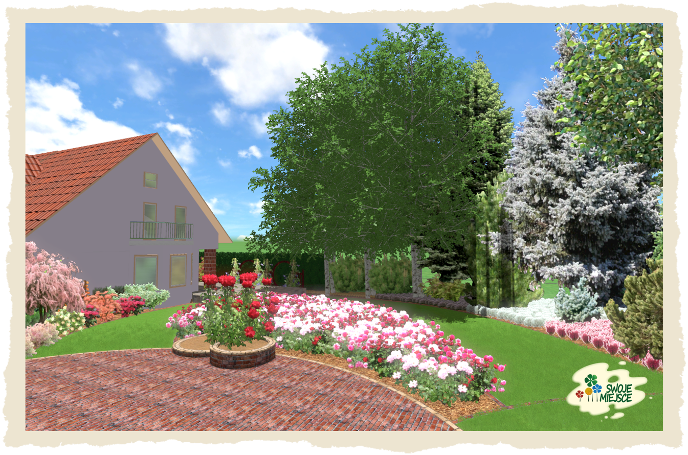 – wzdłuż ogrodzenia, za tarasem domu miejsce na niewysoki, kolorowy żywopłot;