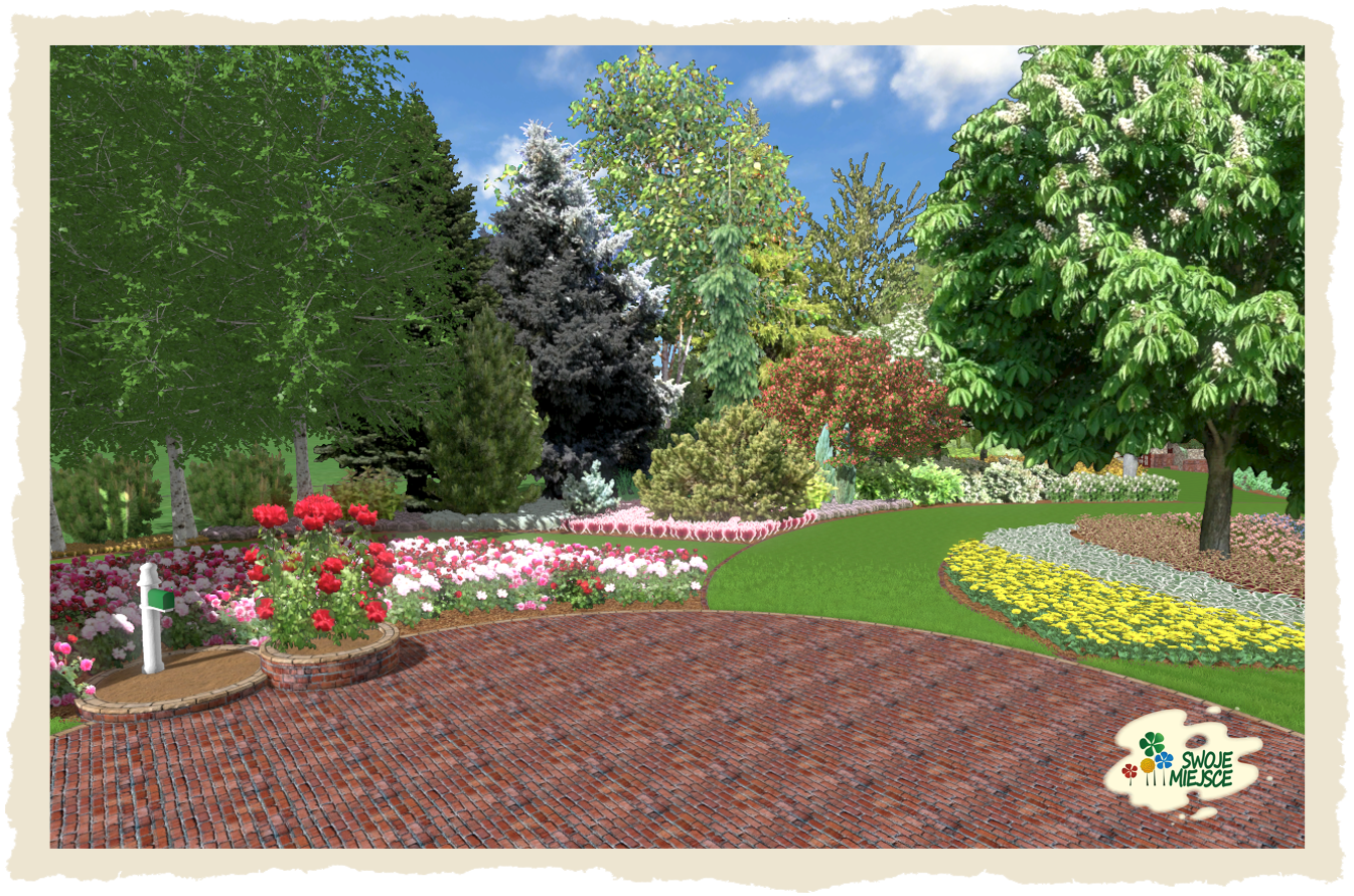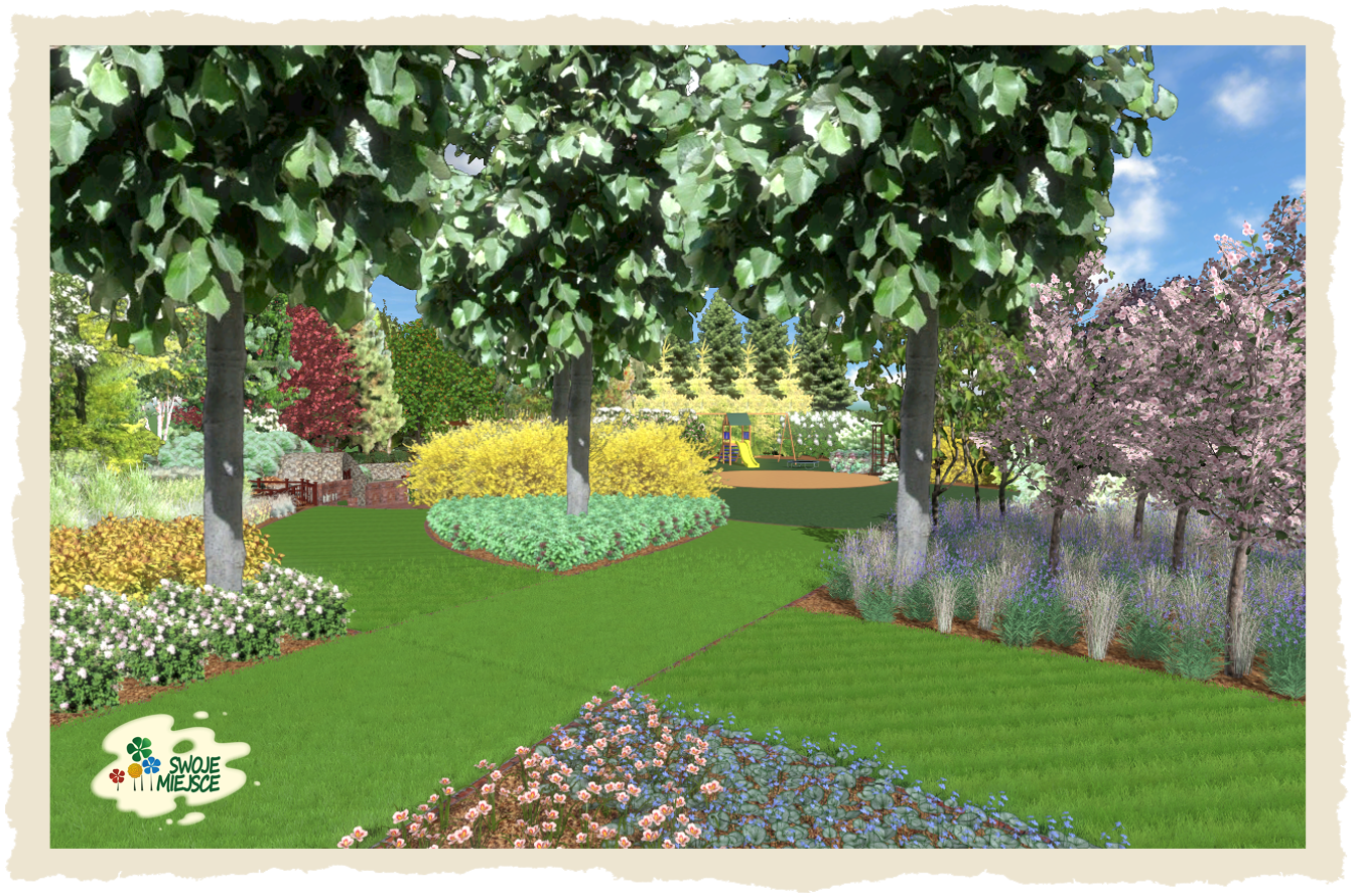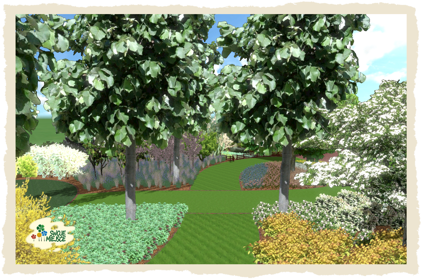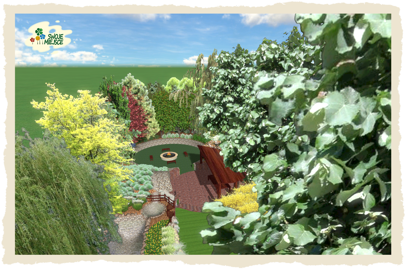 – wzdłuż ogrodzenia, za tarasem domu miejsce na niewysoki, kolorowy żywopłot;