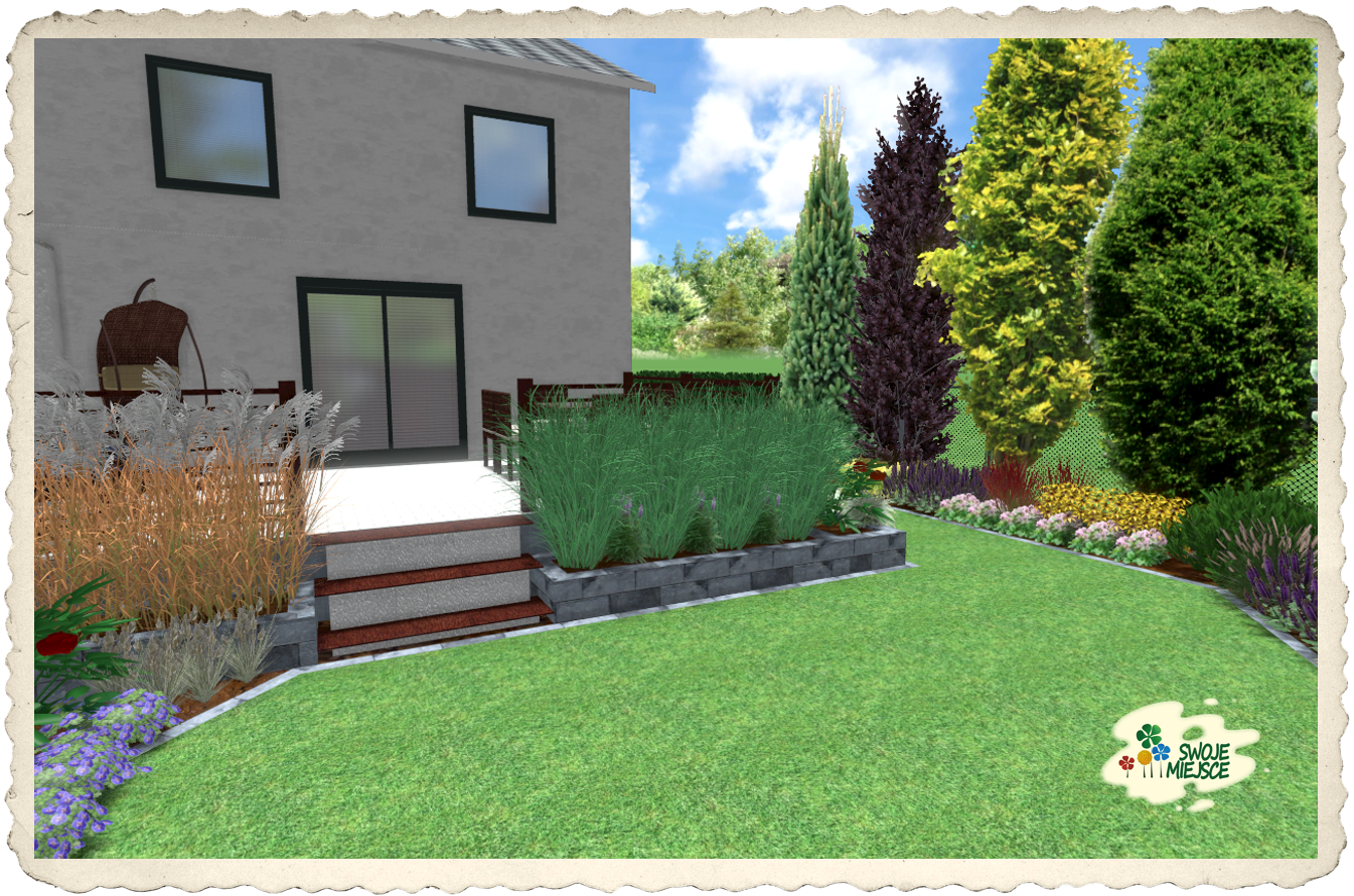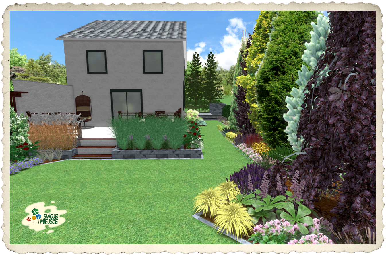Ogród zaprojektowano z uwzględnieniem wszystkich życzeń inwestora. Założeniem do projektu było zagospodarowanie terenu tak, aby połączyć funkcję użytkową ogrodu z naturalistyczną kompozycją nasadzeń.